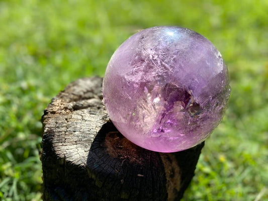 Trapiche Amethyst Sphere with Large Rainbow | Finger Print | Crown Chakra | Rare Collectors Crystal from Brazil | 947 Grams