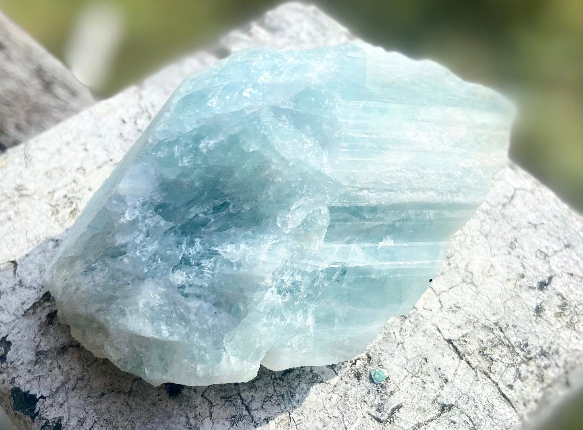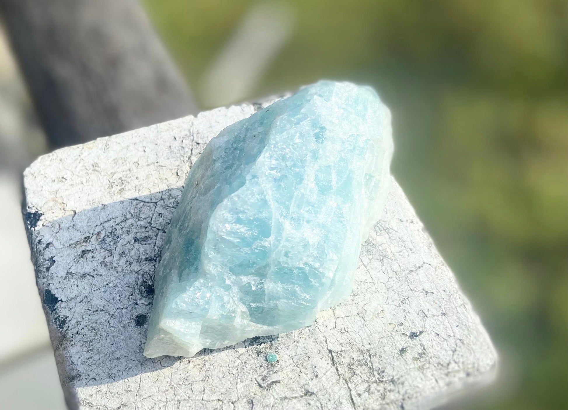 Immerse yourself in the serene essence of the sea with this beautiful AA-grade Aquamarine from Brazil. This striking crystal radiates soft, tranquil blue tones with radiant rainbows, that evoke the clarity and peace of oceanic waters.