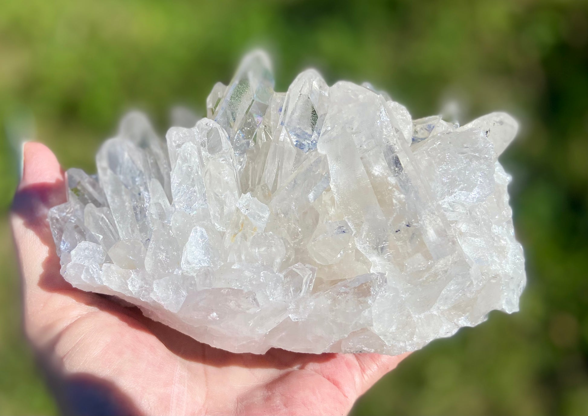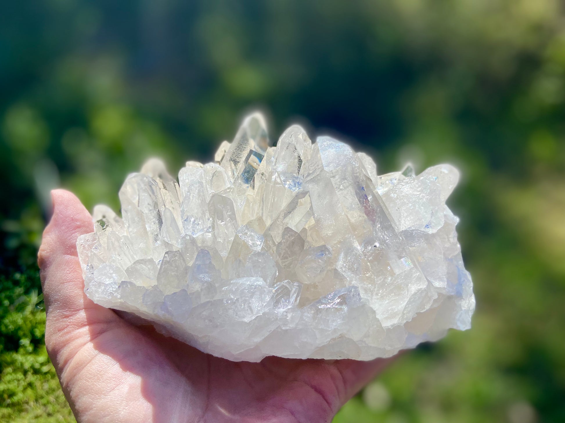 Radiant prismatic arcs will be seen within the fractures (foils) of the gem-like treasures. These rainbows, the clearest exemplifications of Sacred White Light, bridge the gap between the celestial and terrestrial realms. At rare moments, rainbows choose to grace the crystal, unravelling their bewitching beauty before our eyes.