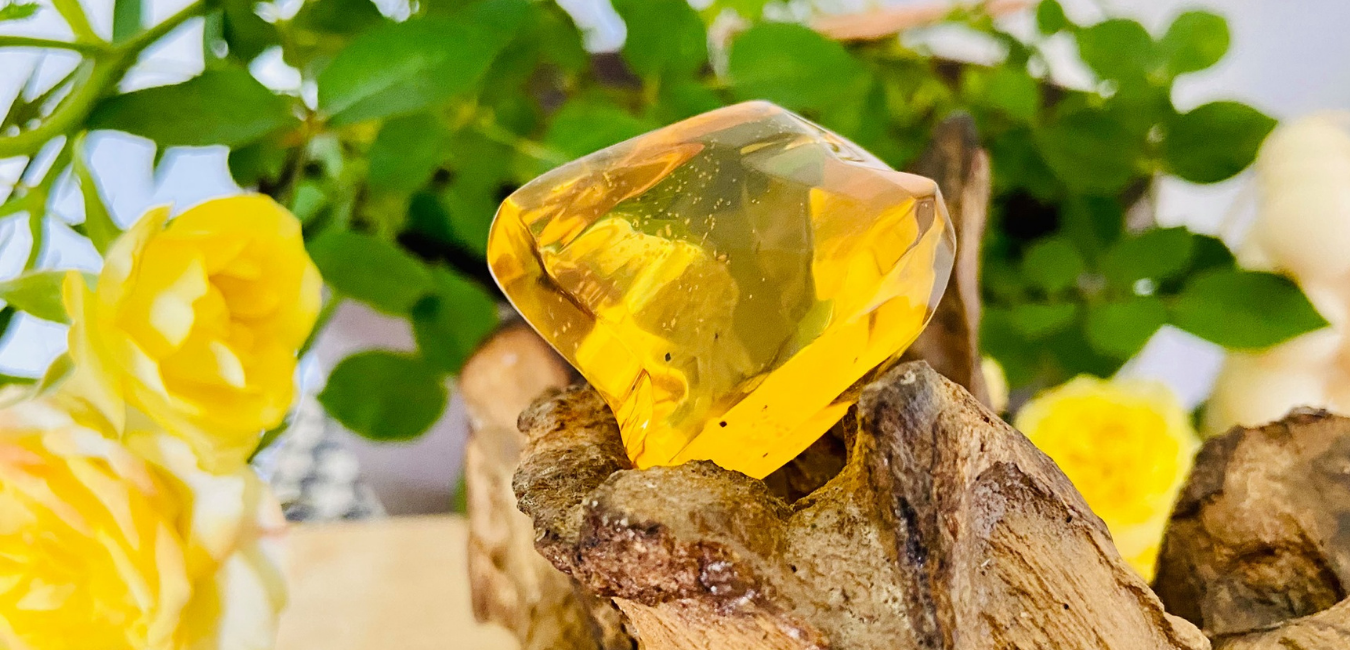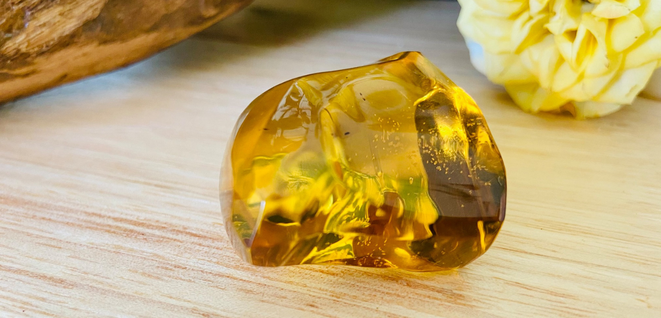 Amber is not strictly a crystal but fossilised resin, belonging to a small class of organic gems, neither a crystal or a mineral, but a biological product straight from Mother Nature. A protective resin that oozed from living trees in a prehistoric forest, fossilising, millions of years ago.