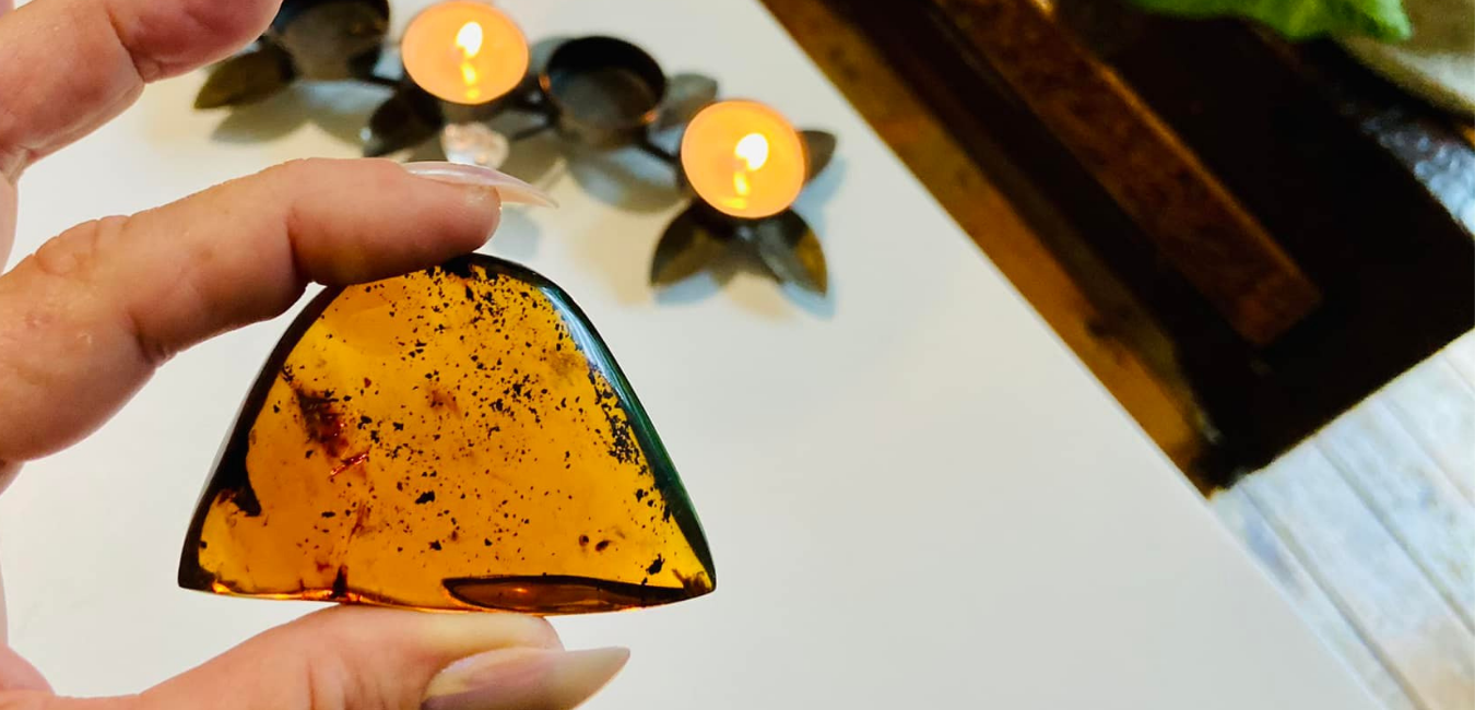 Amber is not strictly a crystal but fossilised resin, belonging to a small class of organic gems, neither a crystal or a mineral, but a biological product straight from Mother Nature. A protective resin that oozed from living trees in a prehistoric forest, fossilising, millions of years ago.