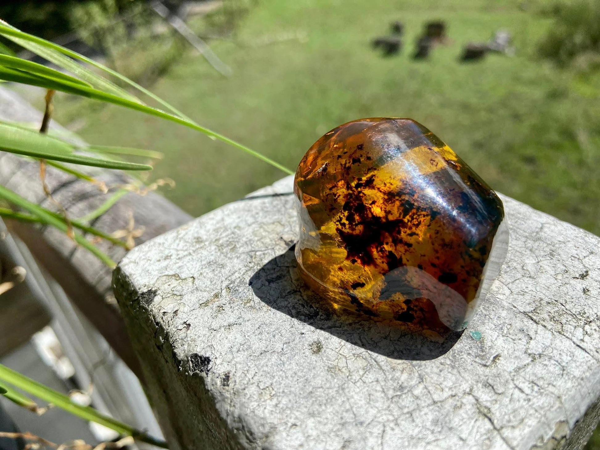 Amber is not strictly a crystal but fossilised resin, belonging to a small class of organic gems, neither a crystal or a mineral, but a biological product straight from Mother Nature. A protective resin that oozed from living trees in a prehistoric forest, fossilising, millions of years ago.